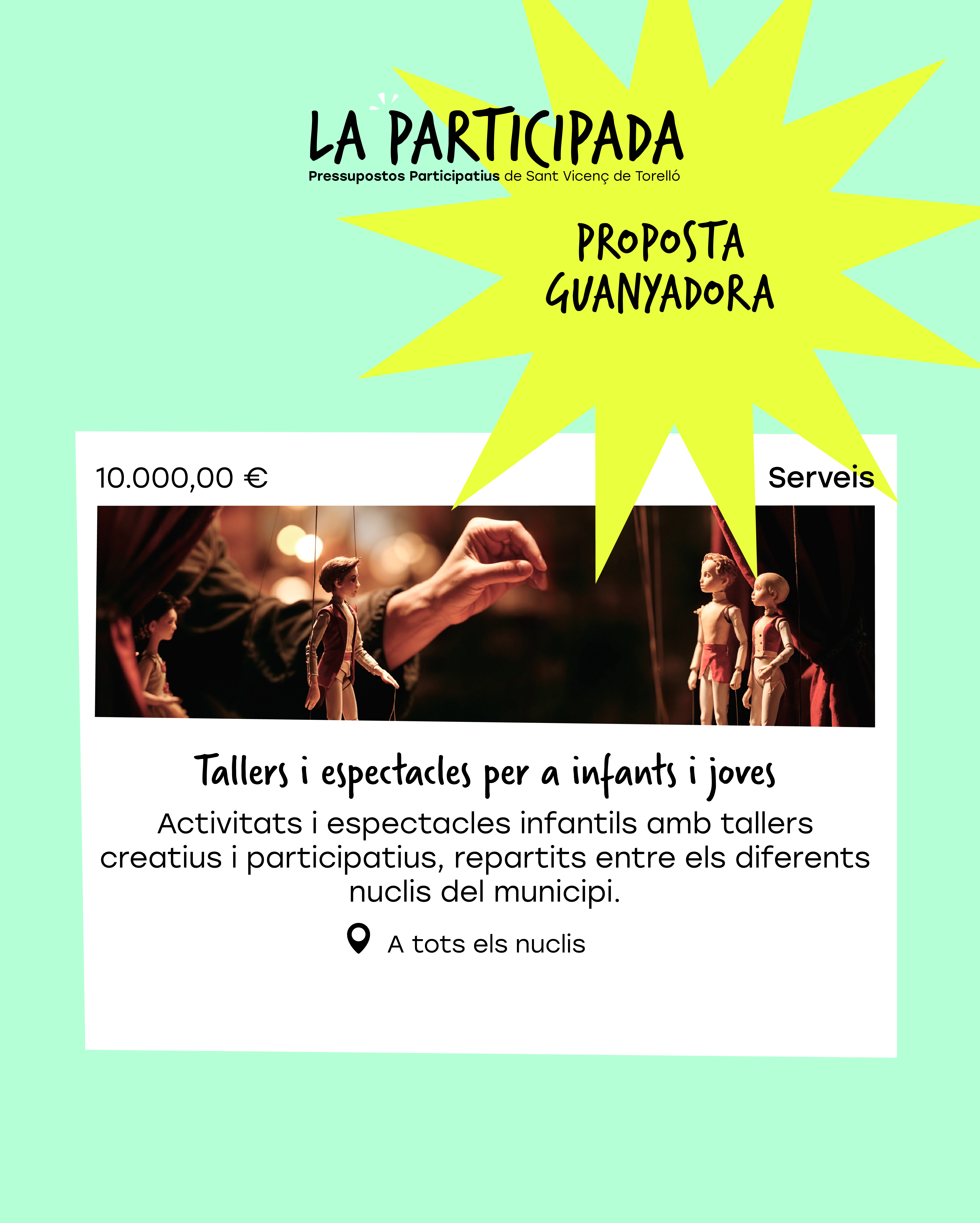 Amb la tria d’aquesta activitat, la ciutadania fa una aposta clara per la cultura, l’educació, la cohesió i el benestar dels infants i adolescents, que representen present i futur del municipi.